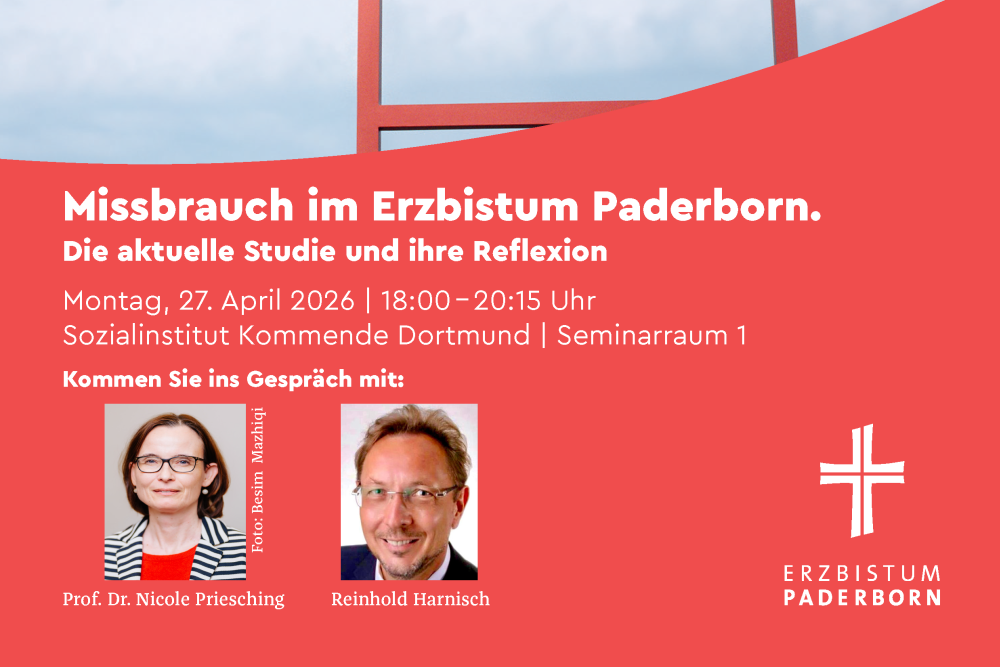 Die Kommende Dortmund lädt herzlich zum nächsten Kommende-Forum ein: Missbrauch im Erzbistum Paderborn. Die aktuelle Studie und ihre Reflexion am Montag, 27. April 2026 um 18:00 Uhr.