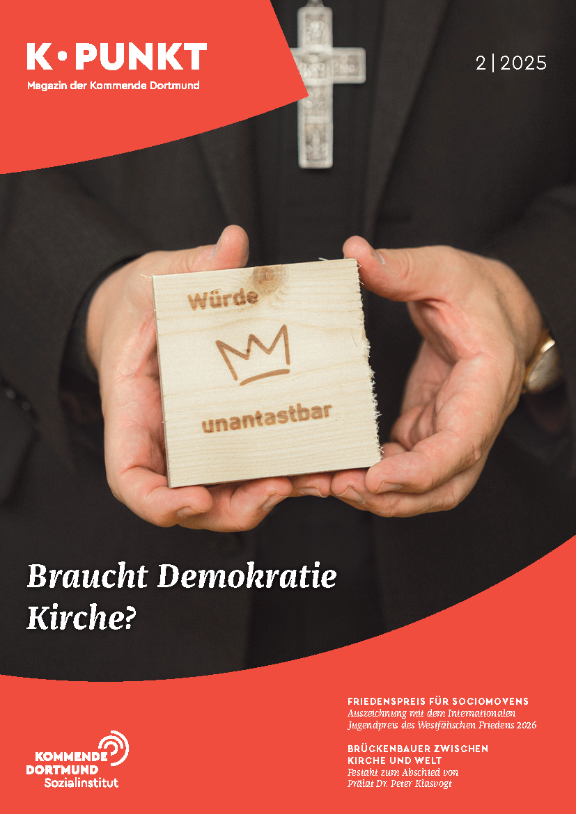 Die Sorgen um die unantastbare Menschenwürde und die Demokratie prägten auch unsere Arbeit im vergangenen Jahr. Dieser K·PUNKT berichtet davon in unterschiedlicher Weise in Auszügen aus unserem vielfältigen Angebot als katholisches Sozialinstitut. Die Herausforderung unserer Gegenwart drängt: zu verhindern, dass das „Sickergift der AfD“ (Karl-Rudolf Korte) und des Rechtspopulismus schleichend unsere gesellschaftliche Mitte narkotisiert.