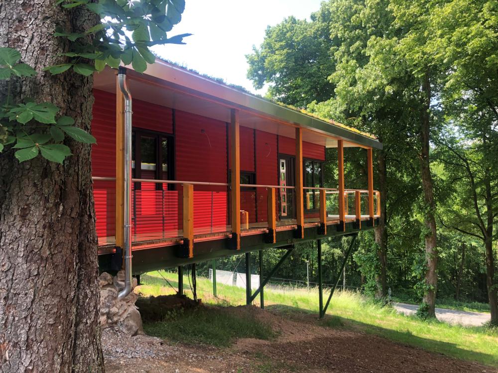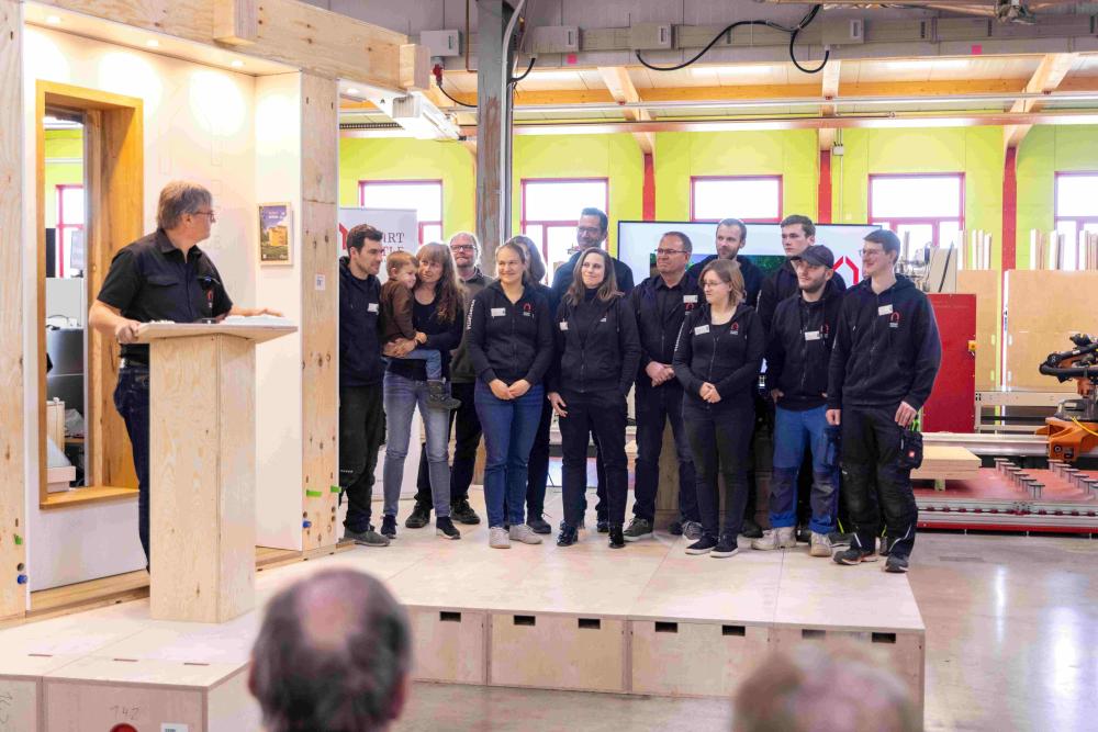 Das Unternehmen Kukatsch Systeme mit 16 Beschäftigten, darunter 4 Auszubildenden, wurde 1988 gegründet. Seit 2021 widmen sich Eckhard Kukatsch und seine Mitarbeitenden zusätzlich dem besonderen Projekt des „Smart Castles“, dem „schlauen Schloss“. Smart Castle steht für ein innovatives, modulares Holzhaus-Baukonzept. Es setzt einerseits konsequent auf nachwachsende Rohstoffe, in einer Tischlerei naheliegend: auf regional angebautes Vollholz, und vermeidet energieintensive und in der Entsorgung problematische Baustoffe wie Beton. Das Konzept wurde immer wieder verbessert, von Materialversuchen begleitet und mit der vollen Kraft der Digitalisierung unterstützt. Die modulare Bauweise, also einzelne Bausteine, die sich einfach herstellen lassen und doch viele Variationen zulassen, ist das Herzstück. Im Ergebnis senkt die serielle Vorfertigung den ökologischen Fußabdruck beim Hausbau durch reduzierte Transportwege, abgesenkten Ressourcenverbrauch, minimierten Verschnitt. Erreicht werden kann mit dieser Bauweise ein Effizienzhaus 40-Energiestandard, kombiniert mit Photovoltaikanlage und Speicher und - wenn gewünscht – auch Barrierefreiheit für Menschen mit körperlichen Benachteiligungen. Zudem sind die Gebäude rückbaubar und sortenrein trennbar. Diese Bauweise kann bestehende Gebäude erweitern, wenn die Familie wächst, oder verkleinern, wenn die Kinder ausziehen. Nebenbei bemerkt: Im Unternehmen Kukatsch Systeme wird pro Jahr 3 x so viel Strom produziert, als sie für ihre eigene Produktion benötigen. In der Zeit von März bis Oktober könnte sich der Betrieb, trotz eigener Fertigung, vom Netz abschalten.